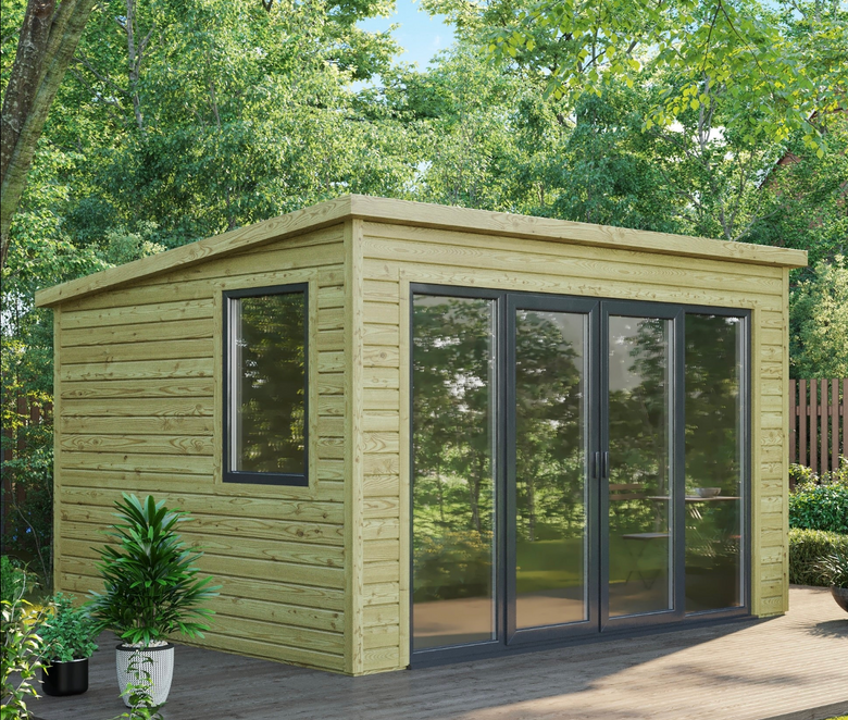 Pent-roof sheds feature a single-sloping roof. This is a popular modern design, ideal for those who love a contemporary style. A pent roof descends from one side of the shed to the other, often from front to back. This versatile design caters to a wide range of preferences and needs.